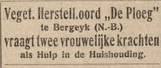 Advertentie Herstellingsoord De Ploeg (bron: De Arbeider, 4 okt. 1924)