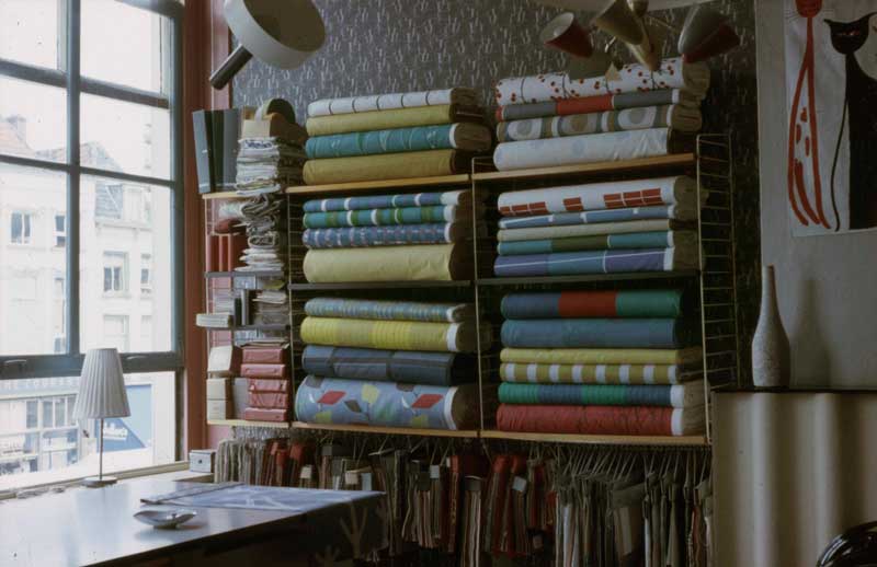 Winkelinterieur met rekken Ploegstof en stofstalen, c. 1955-1965 (bron: TextielMuseum Tilburg)